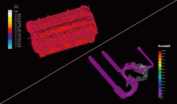 We perform metalworking analysis using state-of-the-art computer-aided engineering (CAE) software and the latest technologies. However, castings are like living things. It is incredibly difficult to simulate on a computer the entirety of the increasingly precise casting methods used in factories today to create thin-walled, lightweight parts. This is where Yamaha's accumulated experience and know-how from years of trials and testing become invaluable. By combining the latest analysis technology with our wide-ranging expertise, we are able to offer clients ideal metalworking solutions.