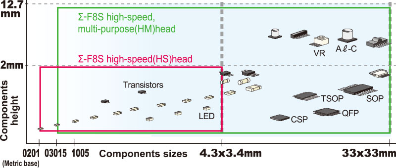 Super-high speed productivity! CPH150,000 (under optimum conditions as defined by Yamaha Motor) 25μm (At 140,000CPH)