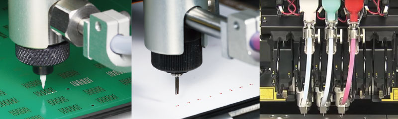 - Air pulse type dispenser: For general-purpose dispensing that handles a wide range of dispensing materials and dot sizes