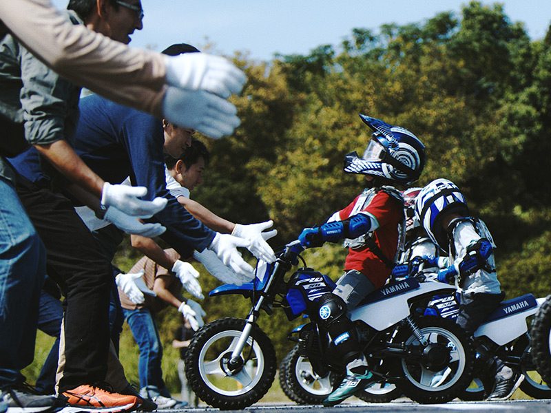 Even for children who are already good at riding bicycles, the first encounter with the sound of a motorcycle engine can generate some visible fear and tension, and that naturally leads to some hesitancy. But they muster up their courage and gingerly twist the throttle, slowly propelling the bike toward their parent/guardian standing ahead of them. “It’s like when a baby crawls for the first time. Just watching that moment makes me happy and it’s what I love the most,” says the instructor, Rie Nishimori. “It’s a moment of Kando shared by both the child and their parent, and I’m glad that that first step is taken with a Yamaha.”